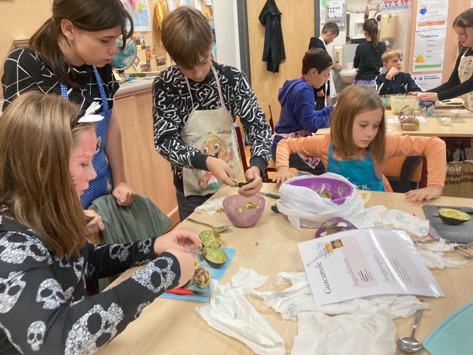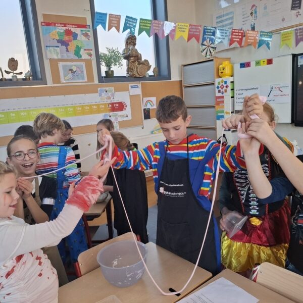 Die dag maakten alle klassen van de lagere school ook een heerlijk griezelige traktatie én werd er ook gewerkt rond techniek. Er werd slijm gemaakt, tekeningen doorzichtig gemaakt, spookjes kwamen door statische elektriciteit tot leven,...